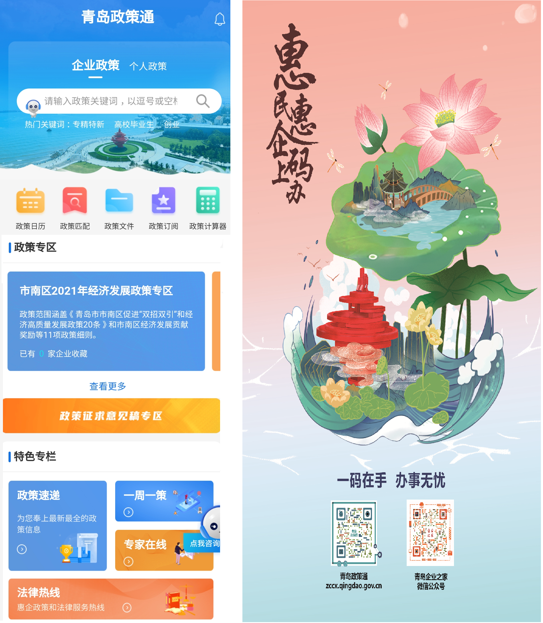 重點建設(shè)“青島政策通”平臺,實現(xiàn)惠企政策的發(fā)布、查詢和部分居民辦事服務(wù)事項辦理指南的查詢功能。印制“惠民惠企碼上辦”二維碼信息海報,在全市進(jìn)行大規(guī)模宣傳推廣。群眾和企業(yè)可通過手機(jī)掃碼進(jìn)入平臺,直接查詢申請使用各項政策,讓政策看得見,進(jìn)一步提高公共政策的知曉率。