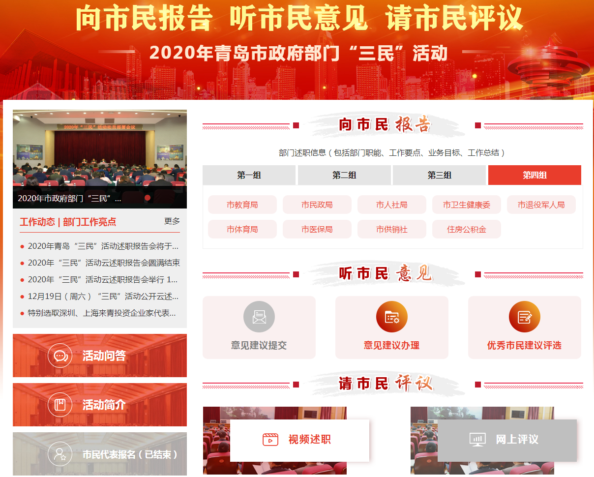 二是政民互動渠道方面。舉辦“向市民報告、聽市民意見、請市民評議”活動,運(yùn)用平臺思維,深化流程再造,全力打造2.0升級版,實現(xiàn)“線下”向“線上”轉(zhuǎn)變。38個市政府部門主要負(fù)責(zé)人以云述職方式向市民代表報告了工作,市民代表通過網(wǎng)絡(luò)平臺收看部門云述職,并在線進(jìn)行評議。