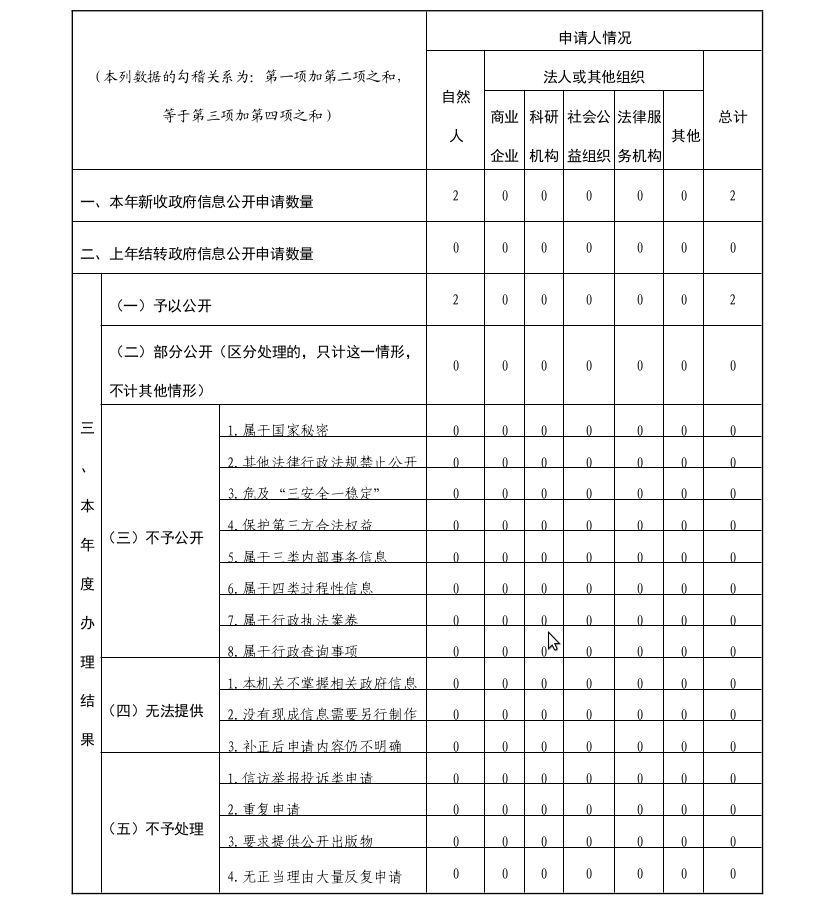 三、收到和處理政府信息公開(kāi)申請(qǐng)情況
