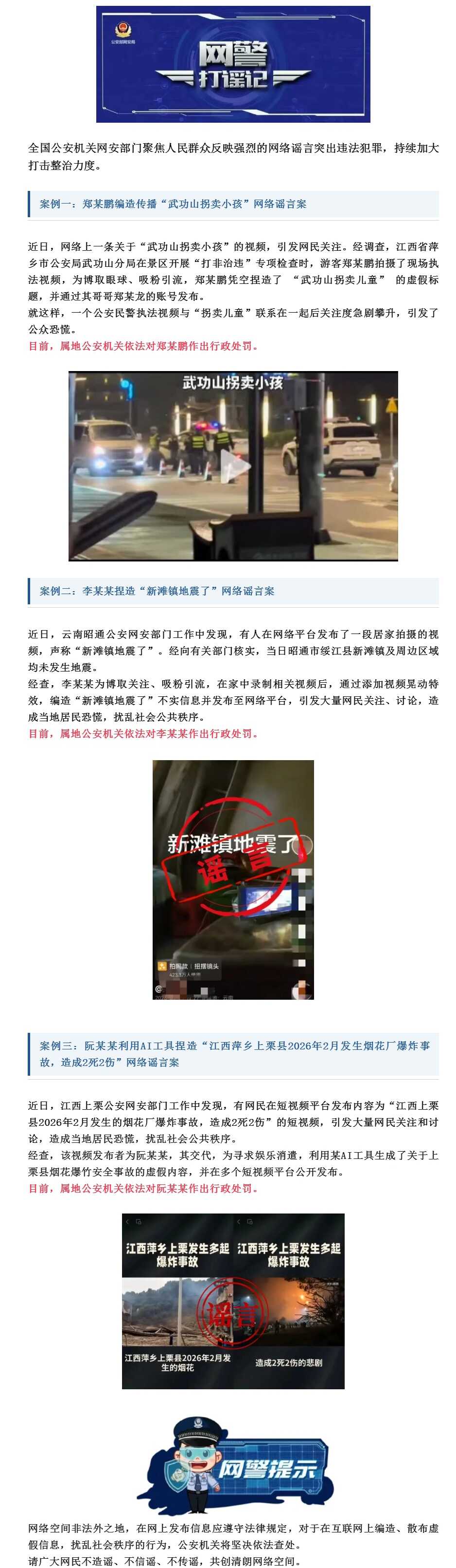網(wǎng)警打謠記_公安部網(wǎng)安局公布3起網(wǎng)絡謠言典型案例