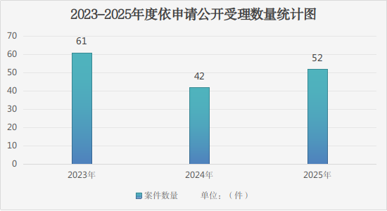 (三)依申請(qǐng)公開(kāi)方面。進(jìn)一步完善依申請(qǐng)公開(kāi)辦理系統(tǒng),制定答復(fù)規(guī)范,加強(qiáng)主動(dòng)溝通,依托市政府信息公開(kāi)平臺(tái)優(yōu)化依申請(qǐng)公開(kāi)工作流程,耐心接待現(xiàn)場(chǎng)申請(qǐng)群眾,主動(dòng)與申請(qǐng)事項(xiàng)較多、內(nèi)容不清晰的申請(qǐng)人電話溝通,分類梳理申請(qǐng)公開(kāi)的內(nèi)容,了解申請(qǐng)人的意圖想法,對(duì)于不予受理或者應(yīng)當(dāng)通過(guò)其他途徑獲取信息的,認(rèn)真解釋相關(guān)法律規(guī)定,取得申請(qǐng)人理解。熱情接待現(xiàn)場(chǎng)查看信息群眾,耐心解釋申請(qǐng)事項(xiàng)依據(jù)。2025年新收到依申請(qǐng)公開(kāi)50件,其中經(jīng)電話溝通后,申請(qǐng)人撤回申請(qǐng)1件;本年度按期辦結(jié)件43;轉(zhuǎn)下年度繼續(xù)辦理6件。