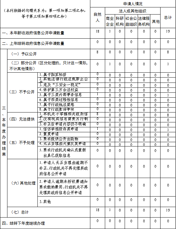 加強服務理念,規(guī)范答復文書格式,進一步規(guī)范依申請公開登記、審核、辦理、答復、歸檔等流程,把依申請公開工作作為服務人民群眾獲取政府信息的重要方式,更好的滿足申請人對政府信息的個性化需求。2021年,市教育局按時辦結政府信息公開申請19件次,其中予以公開8件次,部分公開1件次,不予公開2件次,無法提供8件次,轉結下年度繼續(xù)辦理0件次,未出現(xiàn)因政府信息公開問題導致的申請行政復議、提起行政訴訟的情況。