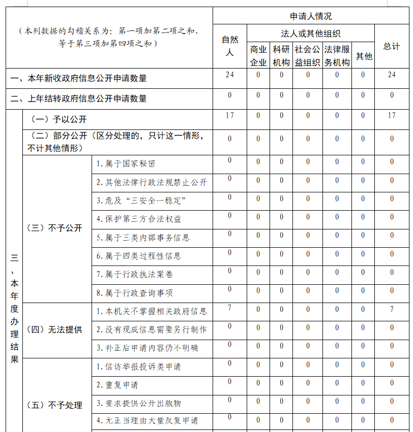 本年度報(bào)告根據(jù)《中華人民共和國政府信息公開條例》(國務(wù)院令第711號)及《國務(wù)院辦公廳政府信息與政務(wù)公開辦公室關(guān)于印發(fā)〈中華人民共和國政府信息公開工作年度報(bào)告格式〉的通知》(國辦公開辦函〔2021〕30號),報(bào)告中所列數(shù)據(jù)的統(tǒng)計(jì)期限自2023年1月1日起至2023年12月31日止。報(bào)告包含總體情況、主動公開政府信息的情況、收到和處理政府信息公開申請情況、因政府信息公開工作被申請行政復(fù)議和提起行政訴訟的情況、政府信息公開工作存在的主要問題及改進(jìn)情況、其他需要報(bào)告事項(xiàng)六部分。