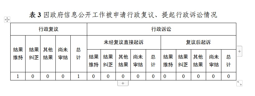 因政府信息公開工作被申請行政復議1件,結(jié)果維持1件。無政府信息公開行政訴訟情況。