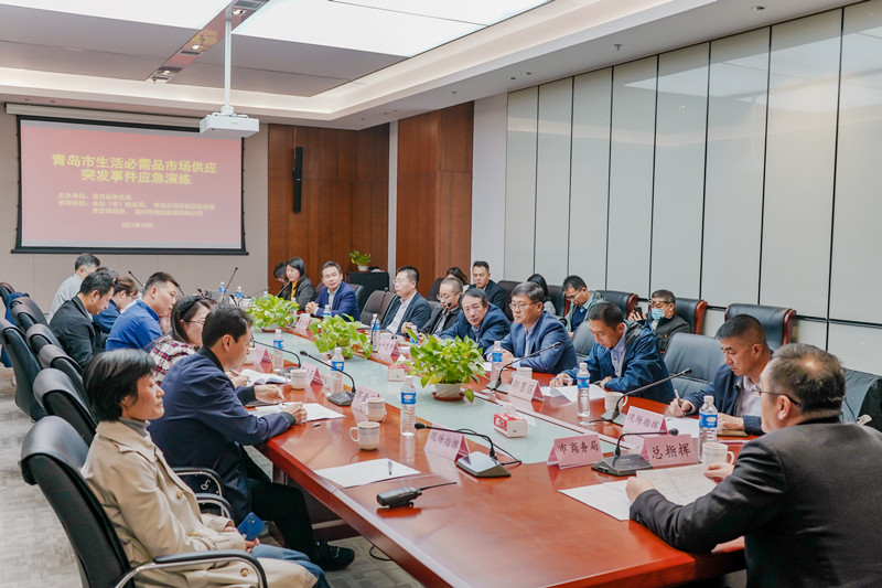 各區(qū)(市)商務(wù)局、青島西海岸新區(qū)商務(wù)局的分管領(lǐng)導(dǎo)及部門負(fù)責(zé)人,以及膠州市里岔鎮(zhèn)政府、福興祥物流集團(tuán)等基層政府、重點(diǎn)市場應(yīng)急供應(yīng)保障企業(yè)代表50余人參加演練。