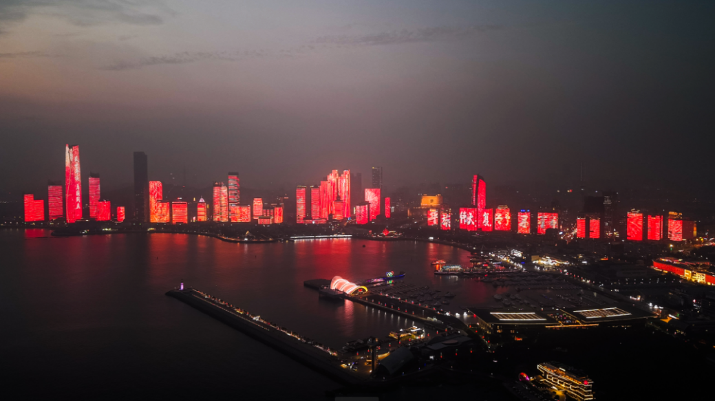 市南區(qū)持續(xù)激發(fā)消費(fèi)潛力,開(kāi)展“好品聚市南精彩消費(fèi)年”等促消費(fèi)活動(dòng),浮山灣燈光秀推出“大美中國(guó)”主題秀及中秋主題秀,與青島風(fēng)光主題等燈光秀編組播放,為市民游客營(yíng)造濃厚的節(jié)慶氛圍。“大美中國(guó)”主題燈光秀分四個(gè)篇章,以綠水青山為底色,伴隨紅綢絲帶飄動(dòng),一幕幕展現(xiàn)祖國(guó)的發(fā)展成就,傳遞大美中國(guó)的家國(guó)情懷。