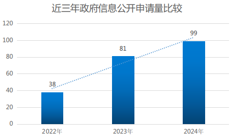 落實(shí)全省“依申請公開質(zhì)效提升年”活動要求,加強(qiáng)辦理過程中與申請人的溝通,及時解決申請人的合理訴求。本年度共受理政府信息公開申請99件,較上年度上漲22%。全年辦理結(jié)果情況:按程序公開52件,屬于其他行政機(jī)關(guān)負(fù)責(zé)公開44件,重復(fù)申請3件。所有依申請公開均按程序依法辦理,無行政復(fù)議、行政訴訟敗訴情況。